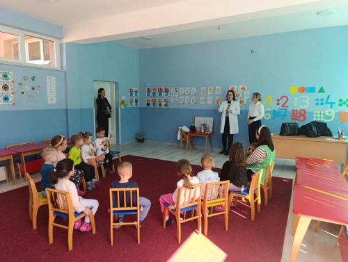 Исти дан посјетили смо организациону јединицу „НЕВЕН 1“ У Старој Дубрави гсје су дјеца имала прилику да послушају исти садржај, позову се на превентивне прегледе у циљу раног откривања каријеса.